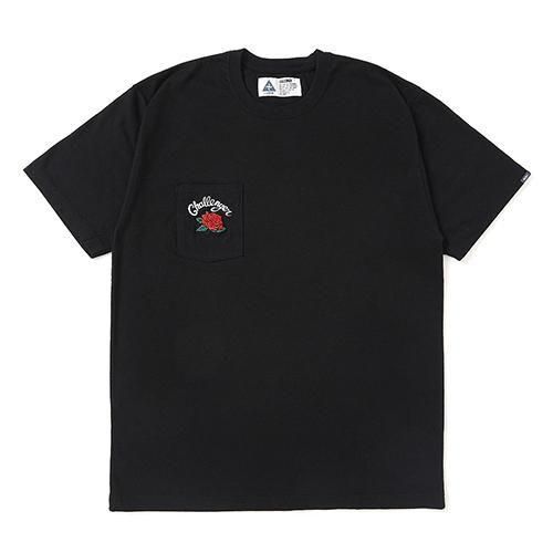 ポケットにローズとロゴの刺繍が入ったオリジナルボディのTシャツです。