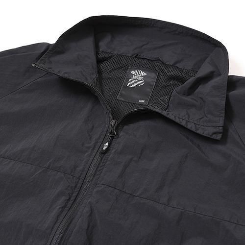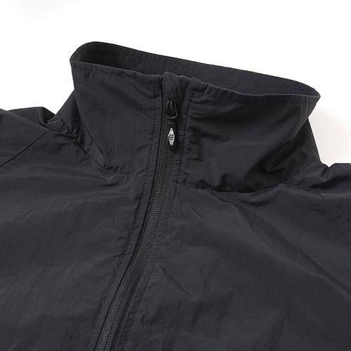 袖にロゴのプリントが入ったナイロン素材のトラックジャケットです。