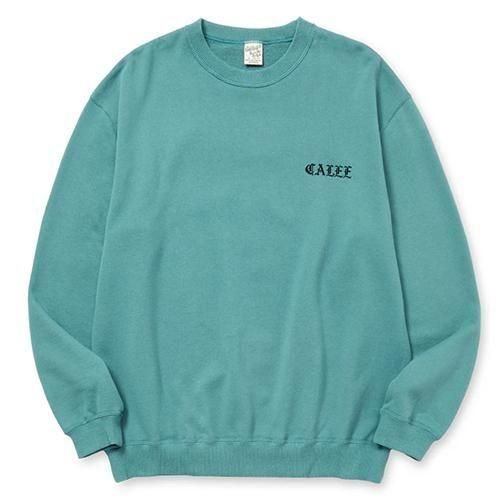 クルーネックスウェットシャツ。希少性の高い旧式の丸編み機を使用した、国産30/10裏毛で製作。最新の編み機に比べると、編み上げるのに時間が掛かり生産性は劣りますが、ゆっくりと編み上げられた裏毛はふっくらと柔らかい風合いを持ち、裏のループも美しく仕上がっているのが特徴。フロント左胸に刺繍、バックにプリントが入る。
