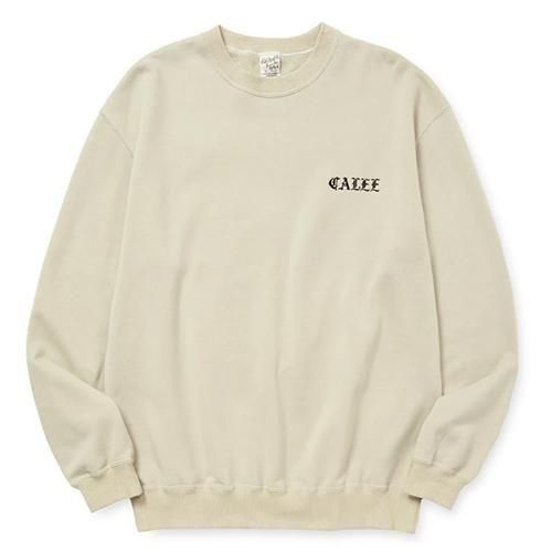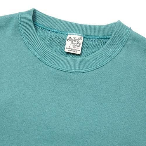クルーネックスウェットシャツ。希少性の高い旧式の丸編み機を使用した、国産30/10裏毛で製作。最新の編み機に比べると、編み上げるのに時間が掛かり生産性は劣りますが、ゆっくりと編み上げられた裏毛はふっくらと柔らかい風合いを持ち、裏のループも美しく仕上がっているのが特徴。フロント左胸に刺繍、バックにプリントが入る。