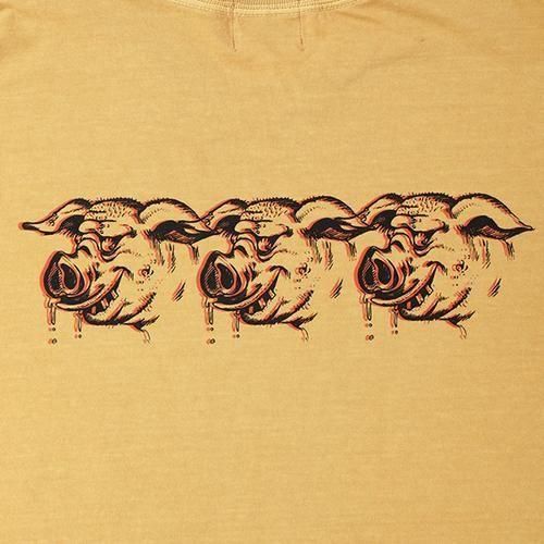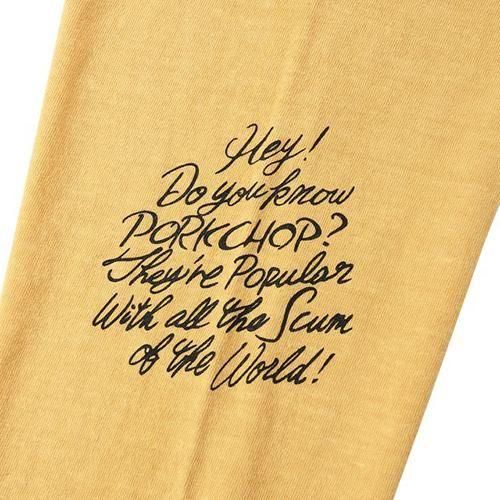 SCUM PORKのロンTです。背面にSCUM PORK,フロントにPORKとロゴ,両袖にプリントが入っています。古着のような質感のボディです。