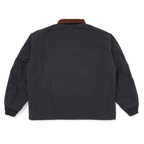 襟がコーデュロイのワークジャケットです。プリマロフトを使用した薄手の中綿キルティングの裏地になります。