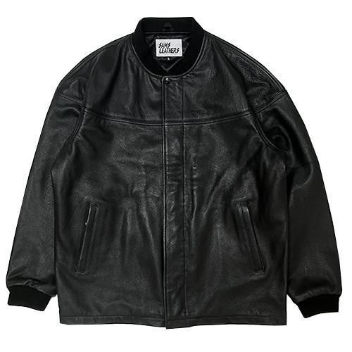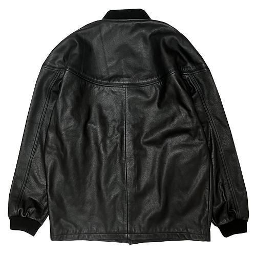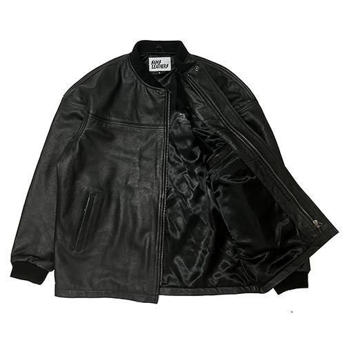 レザーのダービージャケットです。袖と首がリブ仕様です。開閉はダブルジップになります。