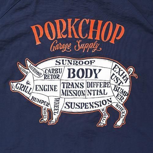 PORKBACKシリーズの新作のナイロンジップジャケットです。表面にしわ感のあるコットンライクなナイロンを使用したワイドシルエットのジャケットです。