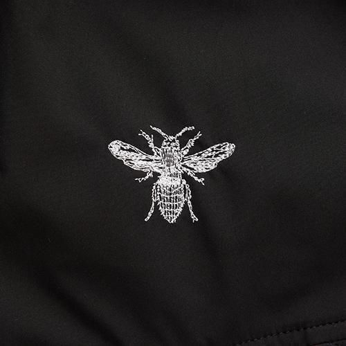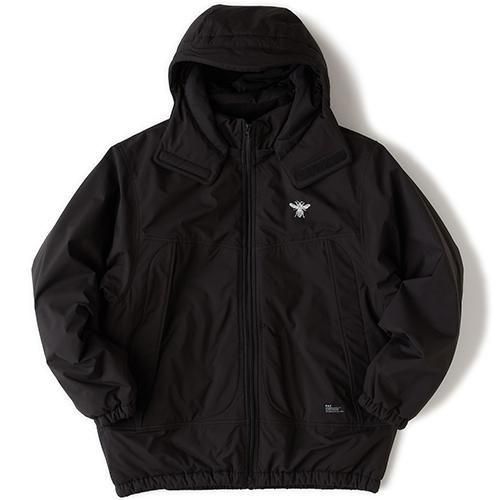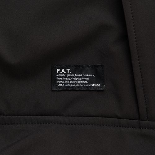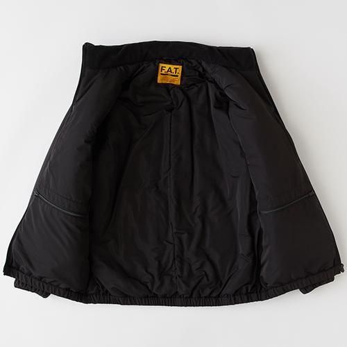伸縮性の高いストレッチボンディング素材を使用したフードジャケット。モダンミリタリーアウターをベースに、F.A.T.らしい独自のアレンジを施したボリューム感と様々なディテールが魅力。シンプルなデザインながらも独特なカッティングや、内ポケットを充実させるなど機能面にもこだわり、着脱可能なフードがコーディネートに変化を与えてくれる。中綿にシンサレート素材を採用することで、着心地の良さと断熱性を兼ね備えた1着。胸の刺繍とポケット横のブランドネームが程よいアクセントに。