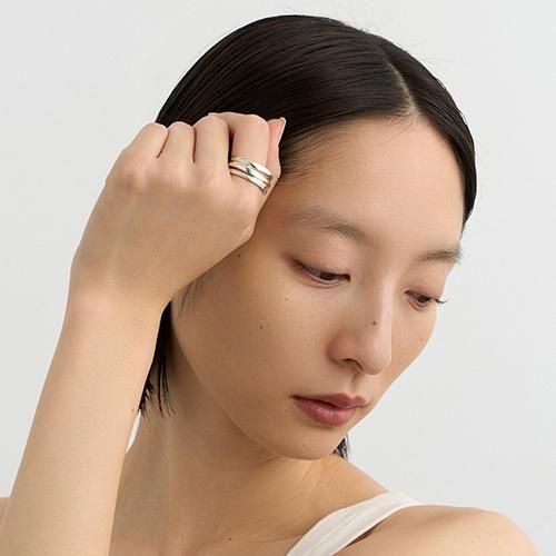 ガルニのシグネチャー商品「クロッケリー」の繊細な曲線、絶妙なエッジを施した3連リングです。 一つで3本重ね着けしたようなデザインが特徴です。 オリジナルアクセサリーケース付き。