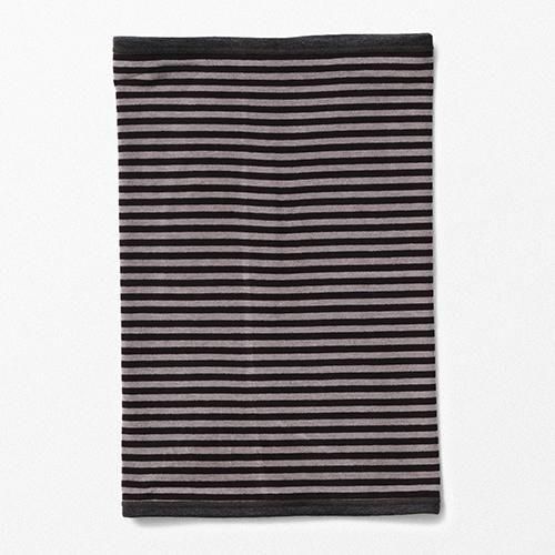 リバーシブルのネックウォーマー。無地とボーダーのリバーシブル仕様。無地の表面にはロゴ刺しゅうがデザインされています。真冬の防寒や、首元にボリュームを持たせたい秋冬のスタイリングで、デイリーユースに活躍してくれるアイテムとなっています。