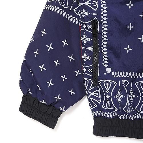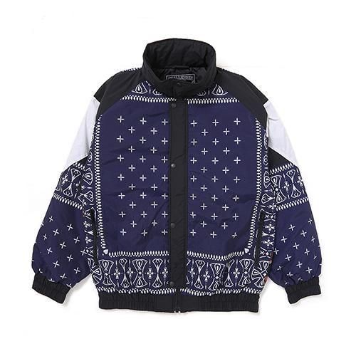 バンダナ柄の中綿ジャケットです。全面にデザイナーの田口氏書き下ろしのバンダナ柄テキスタイルを使用しています。